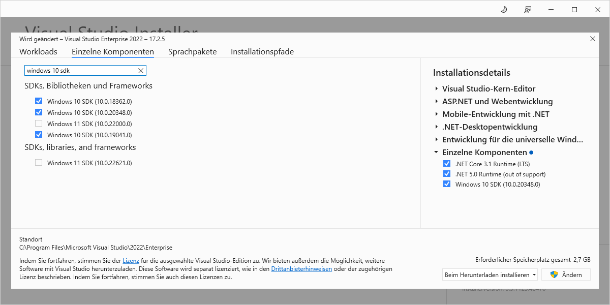 Ich habe ja bereits die eine oder andere UWP-App geschrieben. Außerdem habe ich bereits YouTube-Videos zum Thema UWP-Entwicklung veröffentlicht. Allerdings kommt es vor, dass sich ältere UWP-Apps nicht mehr im neueren Visual Studio importieren lassen, da das passende SDK fehlt. Früher konnte man hier einfach den Visual Studio Installer öffnen und das passende SDK nachinstallieren. Dies ist allerdings nicht für jedes SDK unter Visual Studio 2022 mehr möglich.