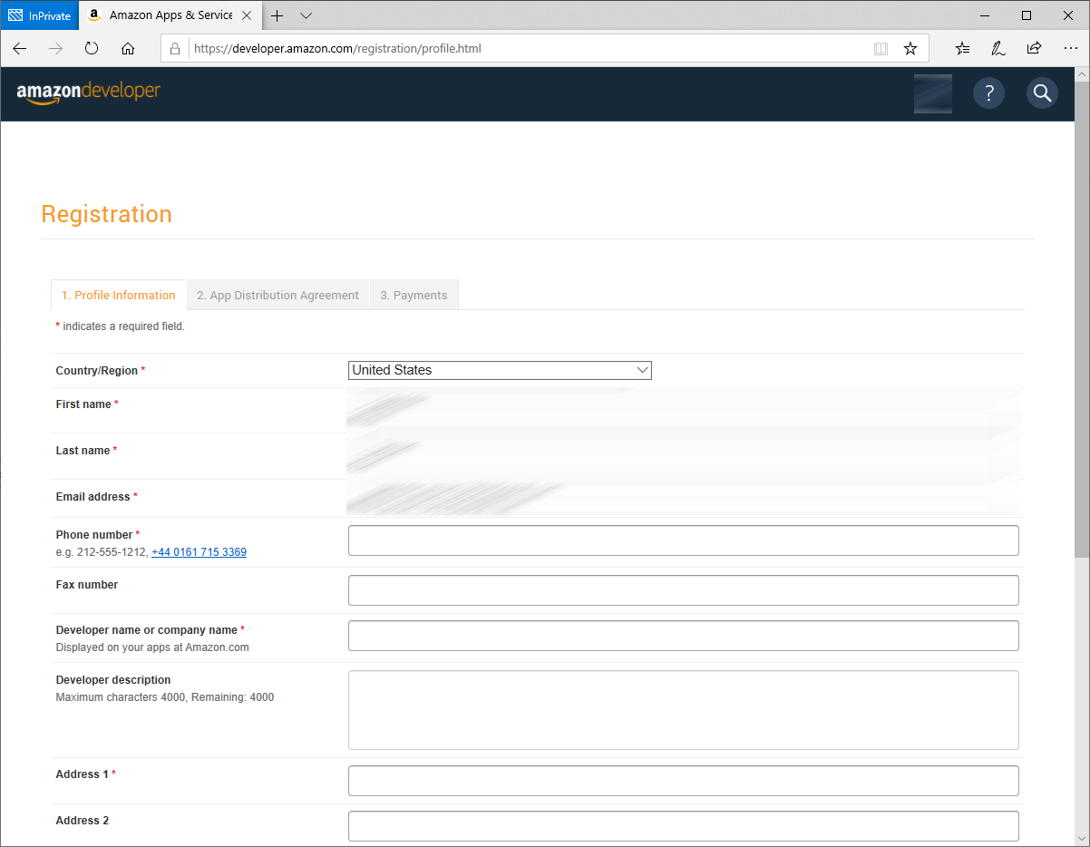 Im nächsten Schritt müssen wir nun einige Profil-Informationen eingeben. Vor- und Nachname sowie E-Mail Adresse werden bereits vorbelegt und den Rest, wie das Land und die Adresse sind nun zu ergänzen. Zum nächsten Schritt kommen wir mit dem Button Save and Continue.