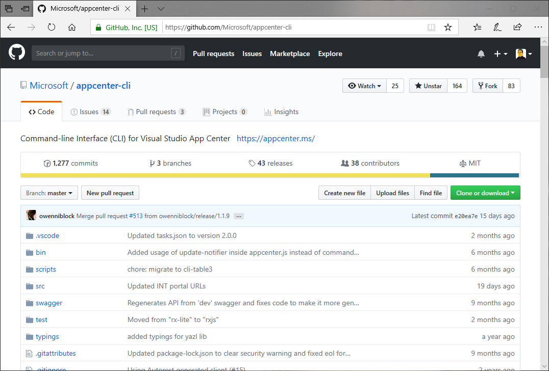 Um das ganze nun z.B. in PowerShell und der Kommandozeile einzusehen, brauchen wir das AppCenter CLI. Hierzu gibt es auf GitHub auch ein entsprechendes Repository , wo man neben Issues auch den Sourcecode einsehen kann.