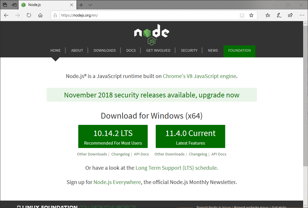 Um das Command Line Interface installieren zu können, muss Node.js auf dem Rechner installiert sein. Sollte dies noch nicht der Fall sein, kann unter https://nodejs.org die aktuellste Version heruntergeladen werden.