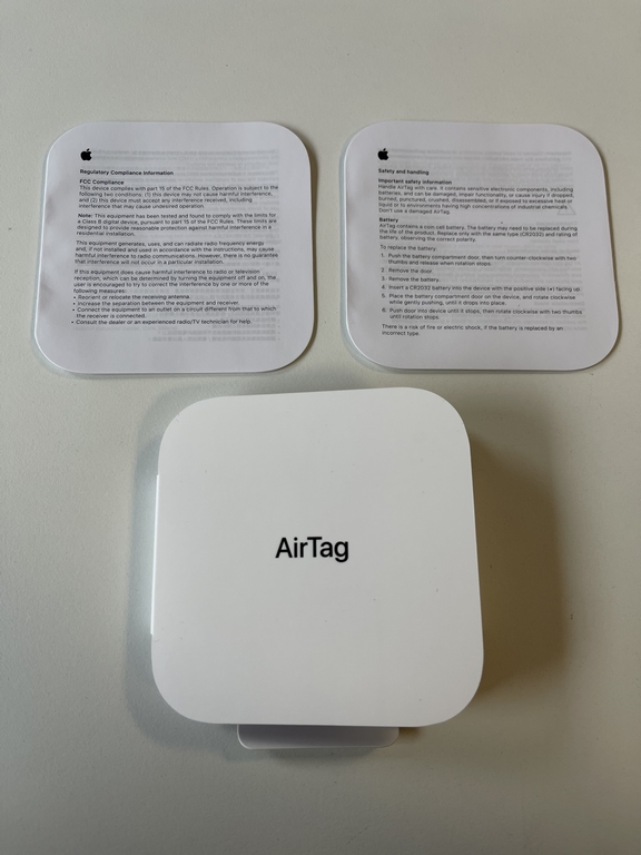 Nach dem Öffnen der Verpackung gibt es zunächst zahlreiche Sicherheitshinweise und eine weitere Verpackung, welche mit dem Schriftzug AirTag markiert ist.