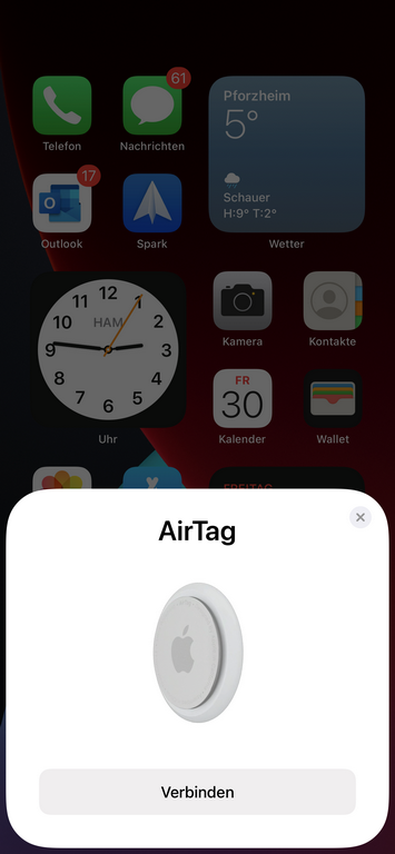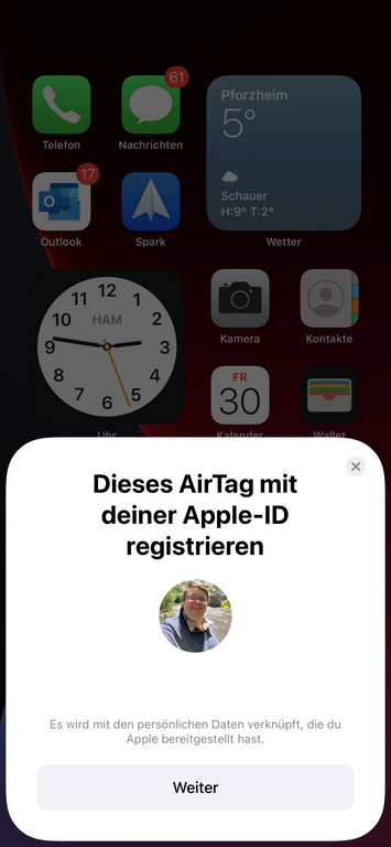 Nun muss der AirTag nur noch mit eurer Apple-ID registriert werden.