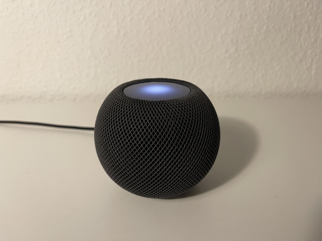 Die wichtigste Frage ist jetzt natürlich der Klang vom dem Gerät. Die Größe entspricht ungefähr dem Echo Dot (4. Generation), wobei der Preis etwa doppelt so hoch ist. Was kann man hier nun erwarten? Die Antwort ist natürlich rein subjektiv, da es auf das eigene Ohr ankommt. Ich persönlich finde den Sound für die Größe wirklich ziemlich gut, da der Sound satt ist und auch bass-lastigen Sound gut wiedergibt. Daher bereue ich den Kauf auf keinen Fall und der HomePod macht sich richtig gut auf meinem Nachttisch.