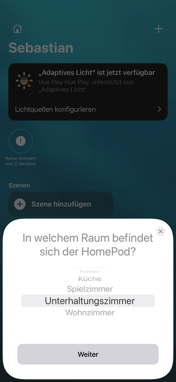 Zunächst soll man einen Raum auswählen, in dem der HomePod mini platziert wird.