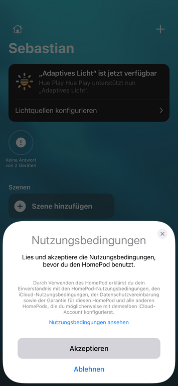 Die Einrichtung ist, wie für Apple typisch, relativ einfach. Entweder bringt man sein iPhone in die Nähe des HomePod mini und die Einrichtung beginnt oder aber man öffnet die Home App auf seinem Gerät und kann auch dann den Einrichtungsprozess starten.