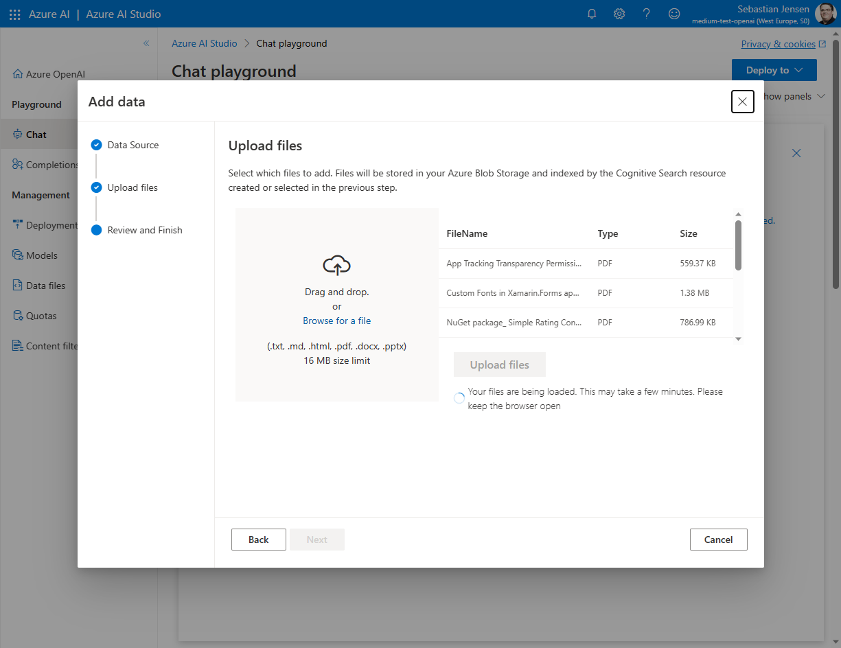 Füge eigenen Daten zu Azure OpenAI hinzu