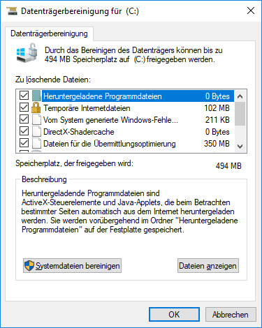 Es öffnet sich ein kleines Dienstprogramm, was einem beim Entrümpeln der eigenen Festplatte behilflich ist.