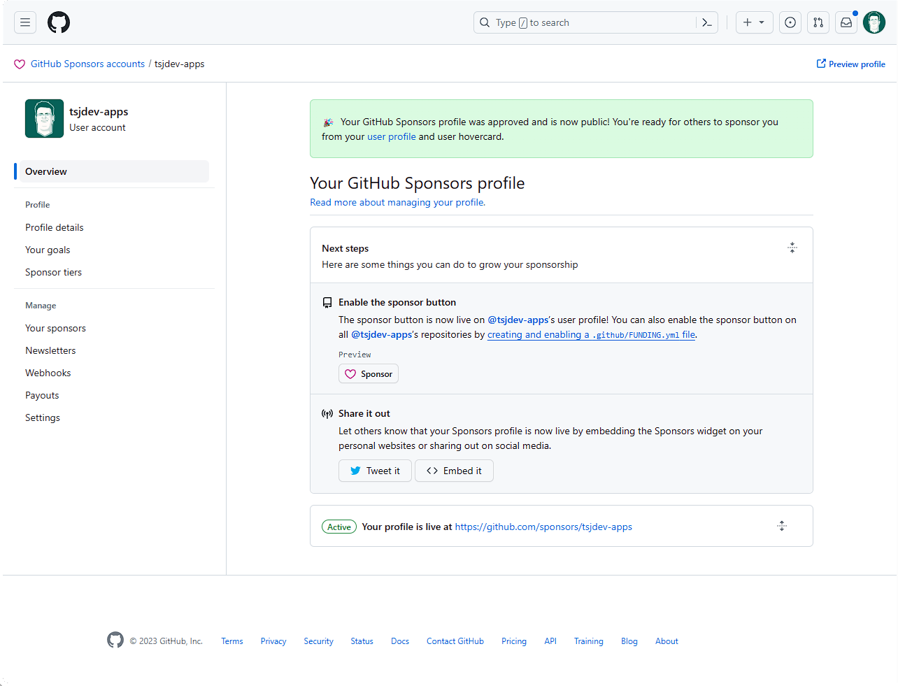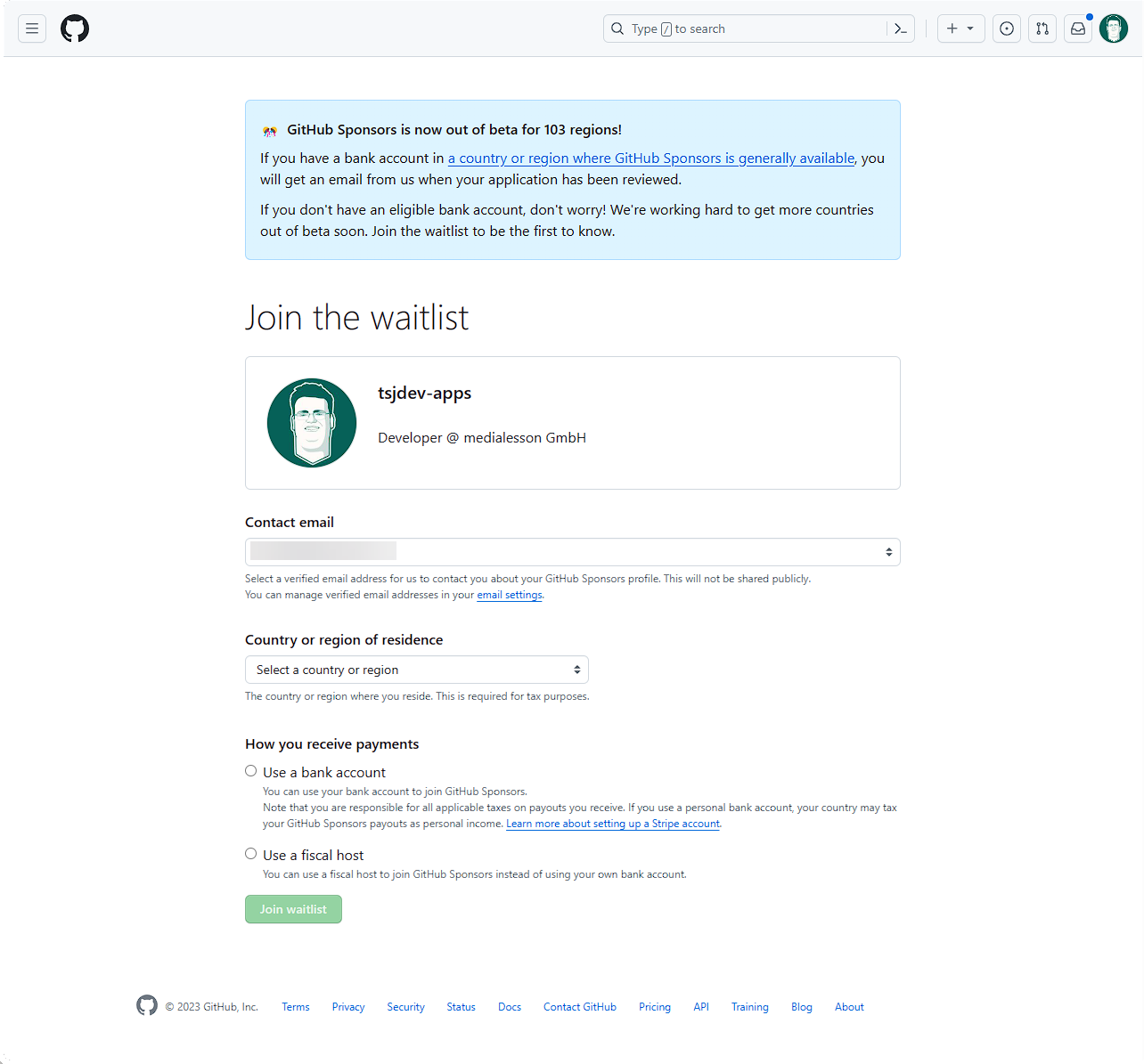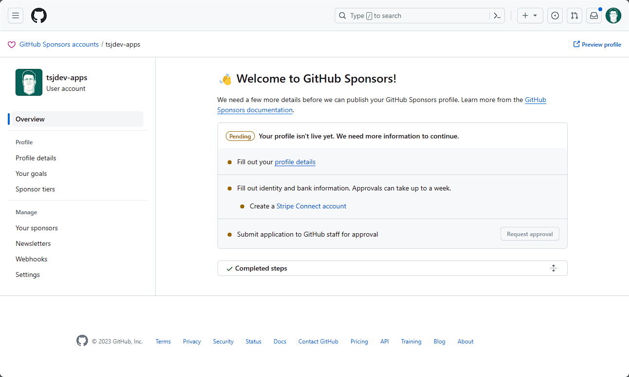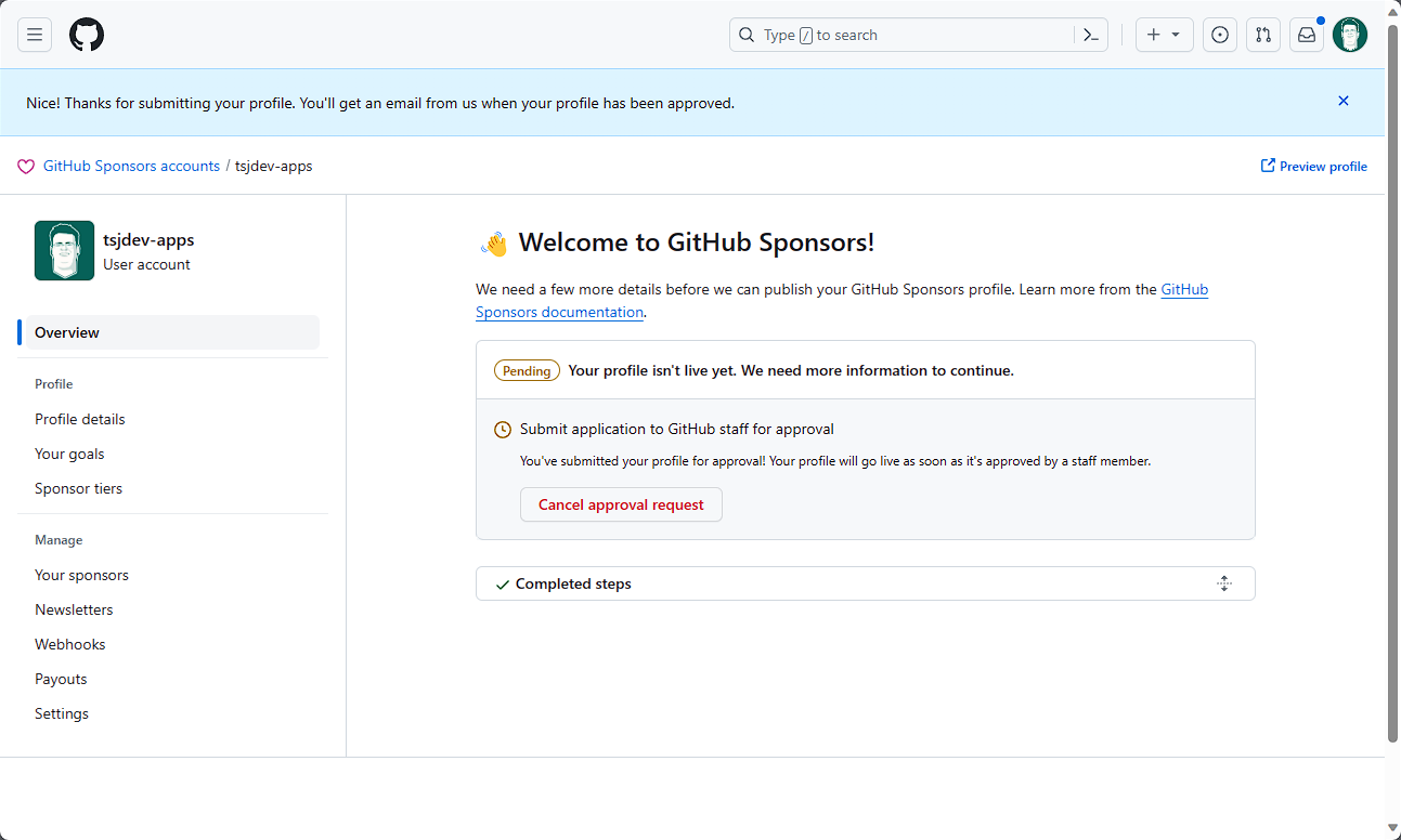 Nun lässt sich das Profil zur Überprüfung einreichen. Hier wird nun von GitHub überprüft, ob alle Daten soweit korrekt sind. Es wird also nicht direkt das Sponsoring freigeschaltet.