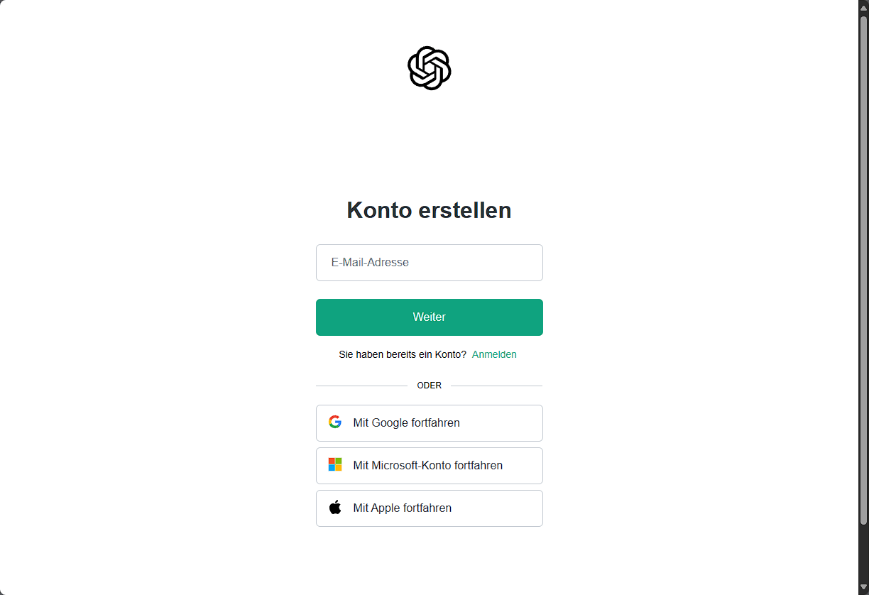 Solltet ihr noch keinen Account bei OpenAI haben oder einen separaten Account nutzen wollt, klickt auf Sign up. Falls schon ein Account vorhanden ist, dann könnt ihr euch auch mit der Hilfe von Log in einloggen.