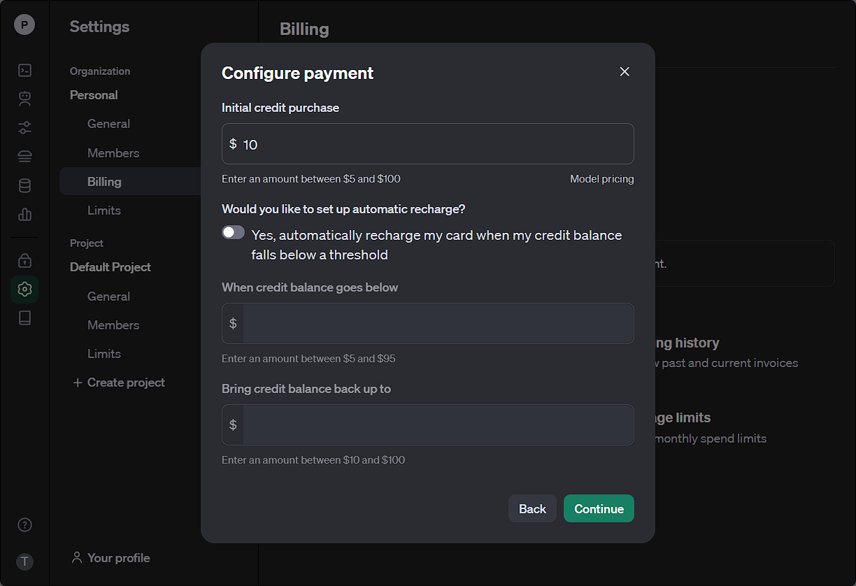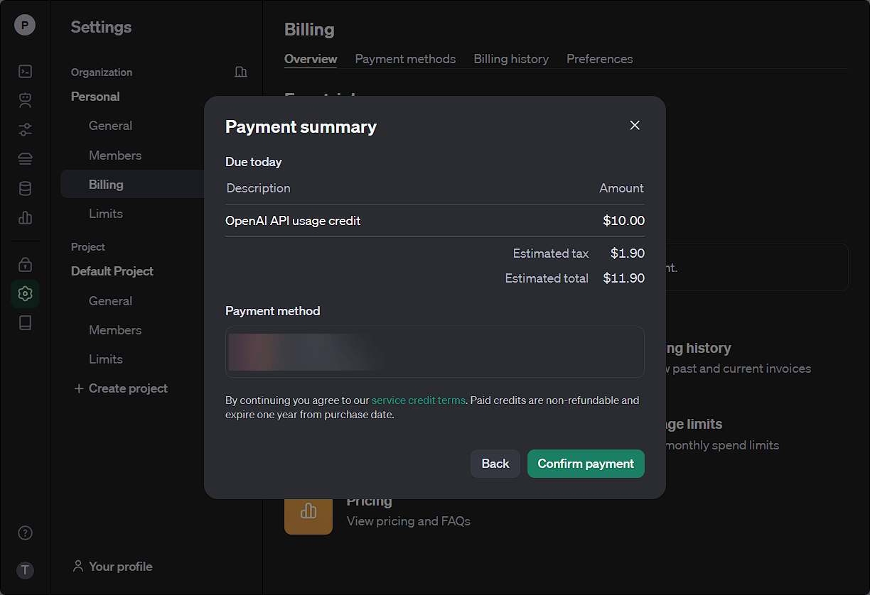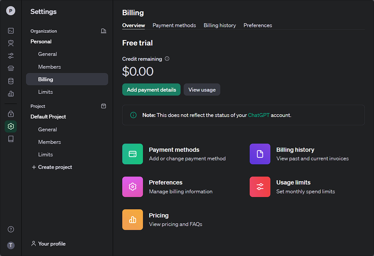 - Billing Information: https://platform.openai.com/settings/organization/billing/overview
