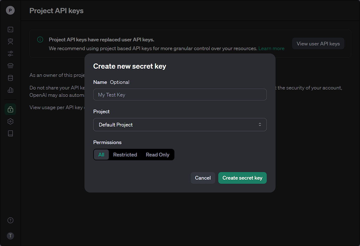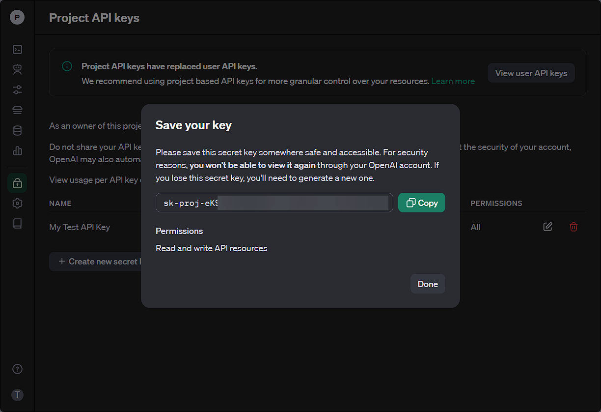 Damit haben wir den notwendigen API Key, um mit OpenAI interagieren zu können.
