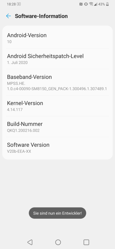 Nun müsst ihr insgesamt sieben Mal auf die Build-Nummer klicken. Ihr bekommt dabei auch einen kleinen Countdown angezeigt.