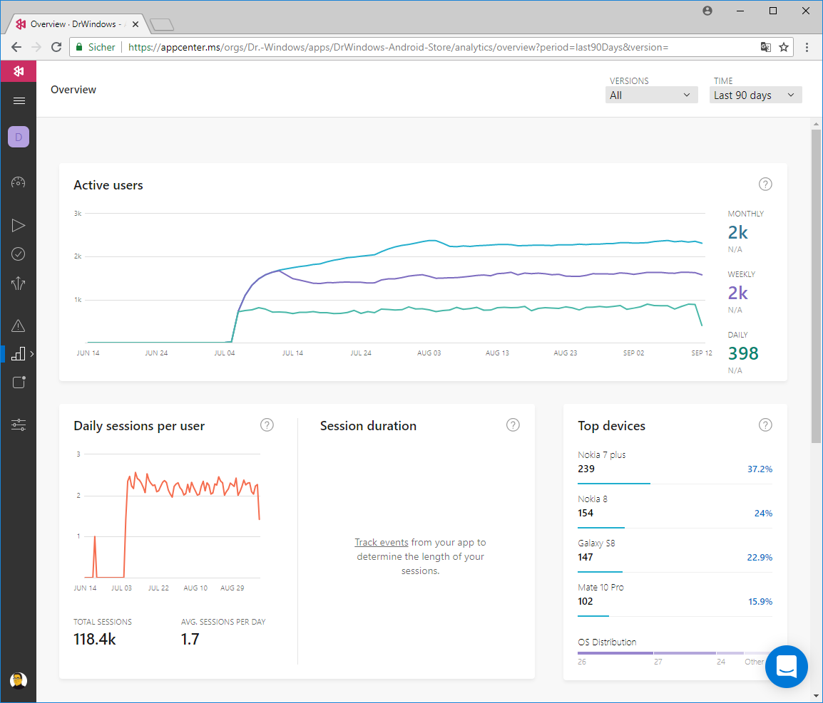 Abschließend möchte ich euch noch ein paar Zahlen und Fakten über die App verraten. Wir haben mittlerweile über 3000 Downloads der Dr. Windows App für Android und eine relative stabile Rate von ca. 750 Nutzer, welche die App täglich nutzen.