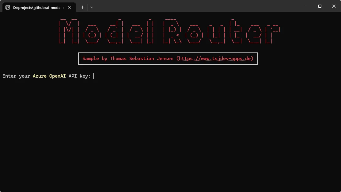 Die Hauptlogik steckt in der Datei Program.cs. Beim Start fragt die App die nötigen Konfigurationswerte ab: Azure OpenAI-Endpunkt, API-Schlüssel und Name des Model-Router-Deployments.