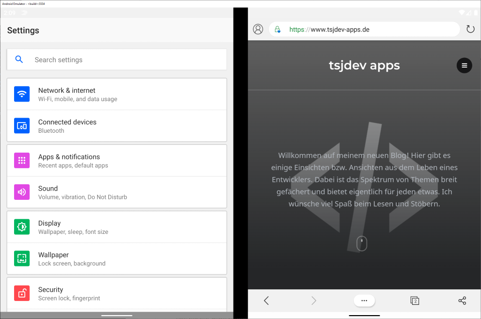 Aktuell fehlen noch die Google Services, so dass kein Google Play Store auf dem Surface Duo Emulator zur Verfügung steht, aber zumindest der Edge Browser ist bereits vorinstalliert und kann verwendet werden. An dieser Stelle aber noch einmal von mir der Hinweis, dass es sich wirklich um Preview-Software handelt und es noch das eine oder andere Problem gibt. Trotzdem ist es ein Schritt in die richtige Richtung und ich freue mich jetzt schon, dass ich meine bestehenden Apps anpassen kann, so dass diese dann auch dem Surface Duo eine gute Figur abgeben.