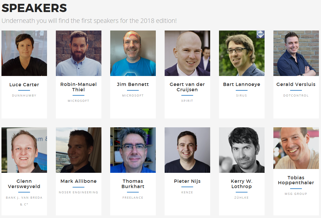 Viele bekannte Gesichter vom letzten Jahr sind wieder mit dabei und eine vollständige Liste der Session befindet sich auf der extra eingerichteten Webseite zu dem Event. Eine Anmeldung ist weiterhin über Meetup möglich und ich freue mich, wenn ich das eine oder andere bekannte Gesicht einmal wiedersehen darf.