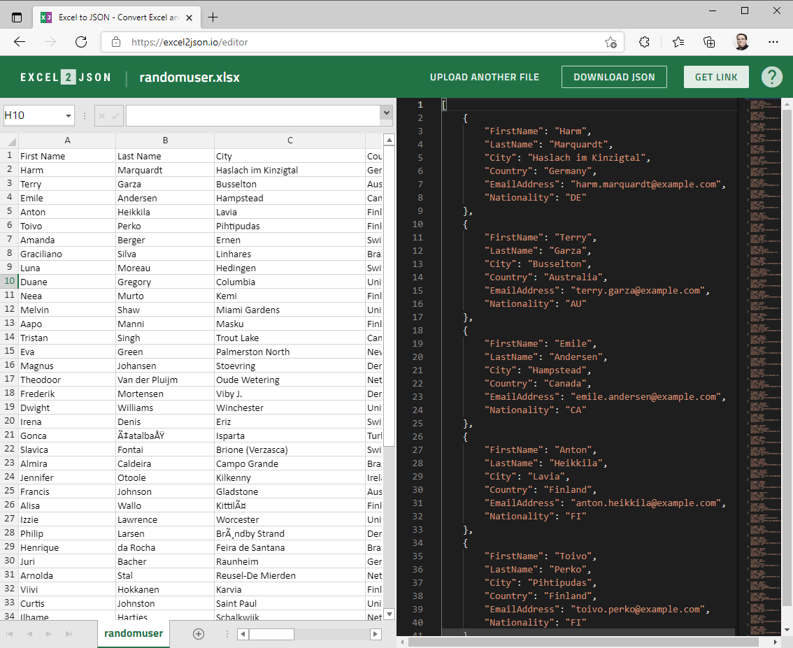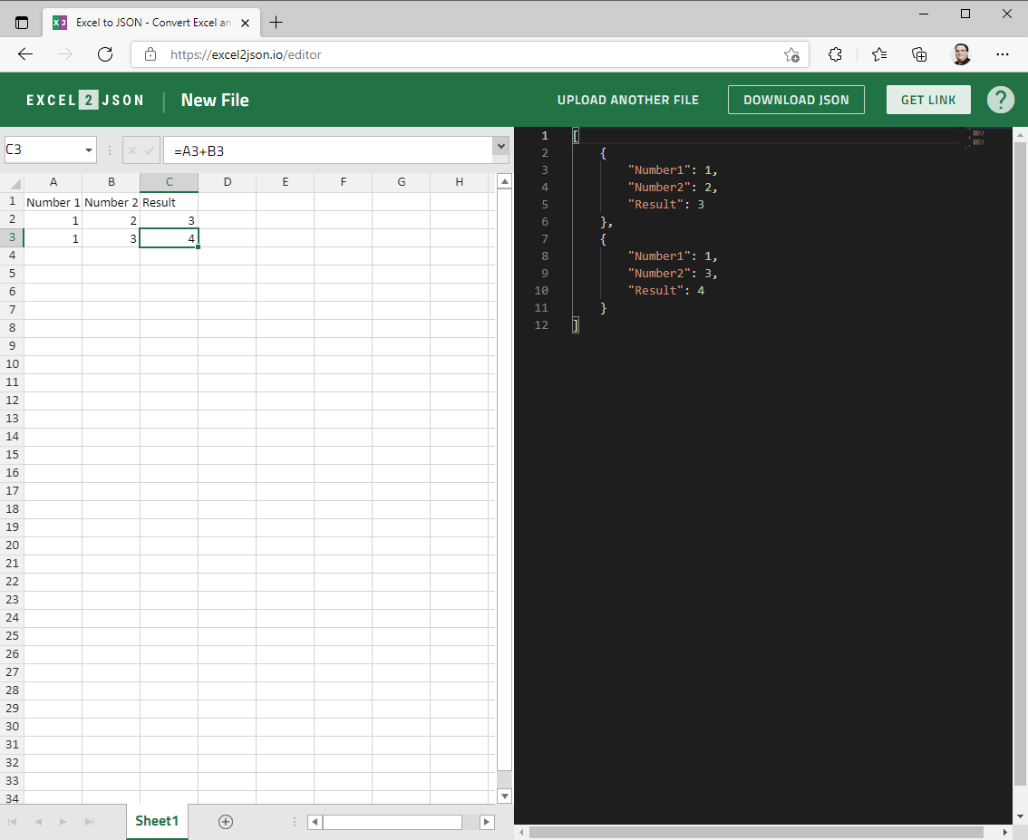 Das Tool erreicht ihr unter der URL excel2json.io in eurem Browser.
