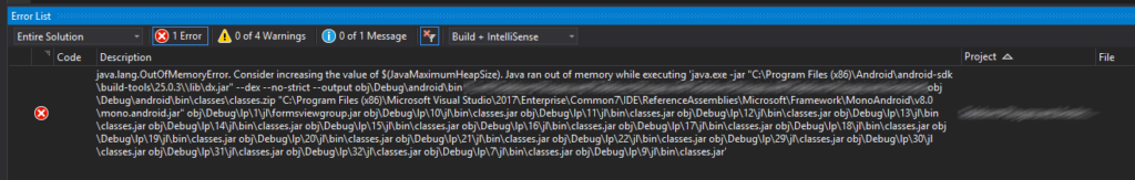 Teilweise kommt es vor, dass meine Android-App, welche ich mit Xamarin.Forms oder auch Xamarin Native entwickle, nicht mehr bauen möchte. Sobald man die App zum Debuggen starten möchte, erhält man nach einer geringen Wartezeit eine Fehlermeldung. Diese besagt, dass man doch bitte die Eigenschaft JavaMaximumHeapSize erhöhen sollte. In diesem Beitrag möchte ich nun kurz aufzeigen, wie man diesen Fehler schnell und unkompliziert lösen kann.