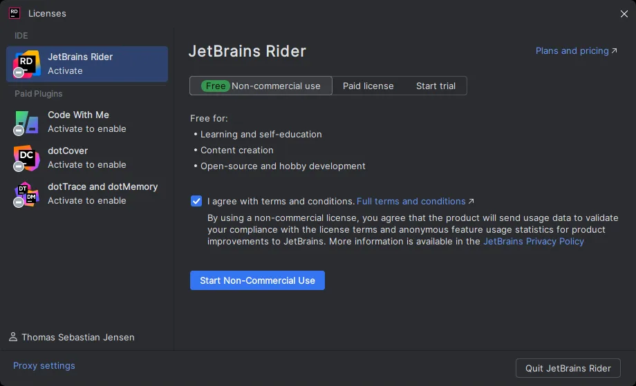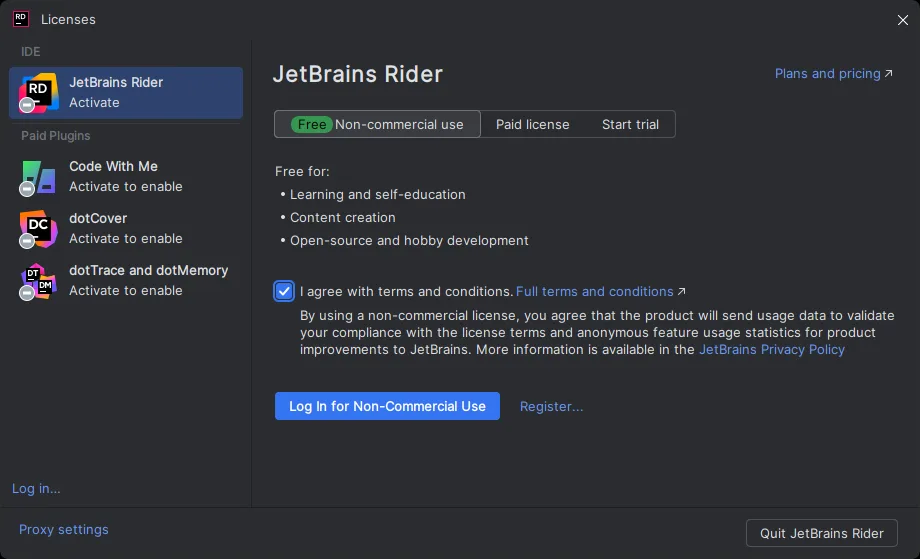 Mit der Entscheidung, Rider kostenlos für nicht-kommerzielle Zwecke anzubieten, öffnet JetBrains die Türen für noch mehr Entwickler, die sich auf die .NET-Entwicklung spezialisieren wollen. Es ist eine großartige Möglichkeit, die neuesten Tools und Features von JetBrains auszuprobieren, sei es für Hobbyprojekte, gemeinnützige Zwecke oder die Weiterentwicklung deiner eigenen Fähigkeiten. Jetzt ist der ideale Zeitpunkt, um Rider zu testen und die Welt der .NET-Entwicklung auf einem neuen Level zu erleben – und das kostenlos!
