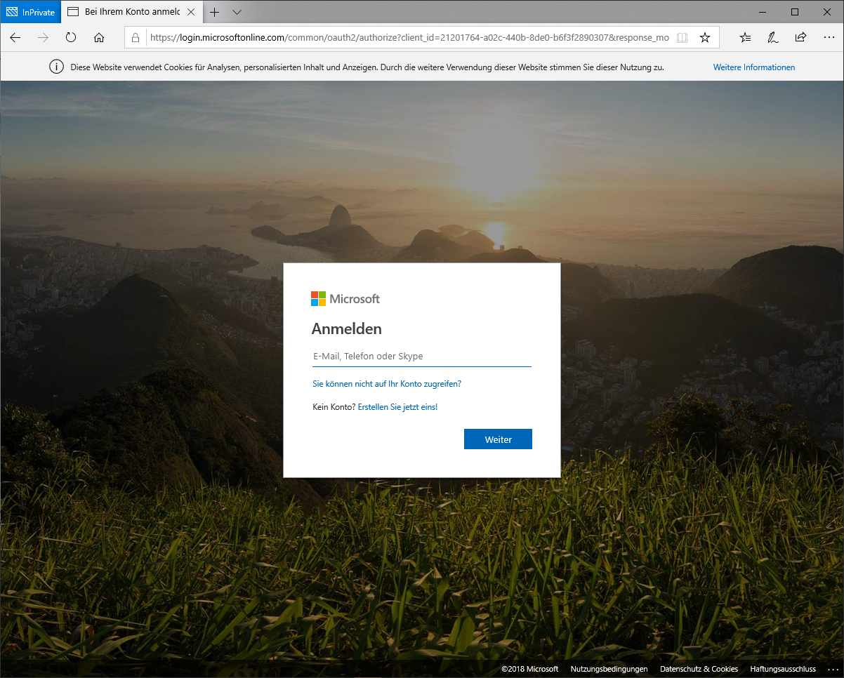 Sollte man nicht automatisch mit seinem Microsoft bzw. Azure AD Konto eingeloggt werden, so kann man dies mit einem einfachen Klick auf den Button Sign in im oberen Bereich nachholen.