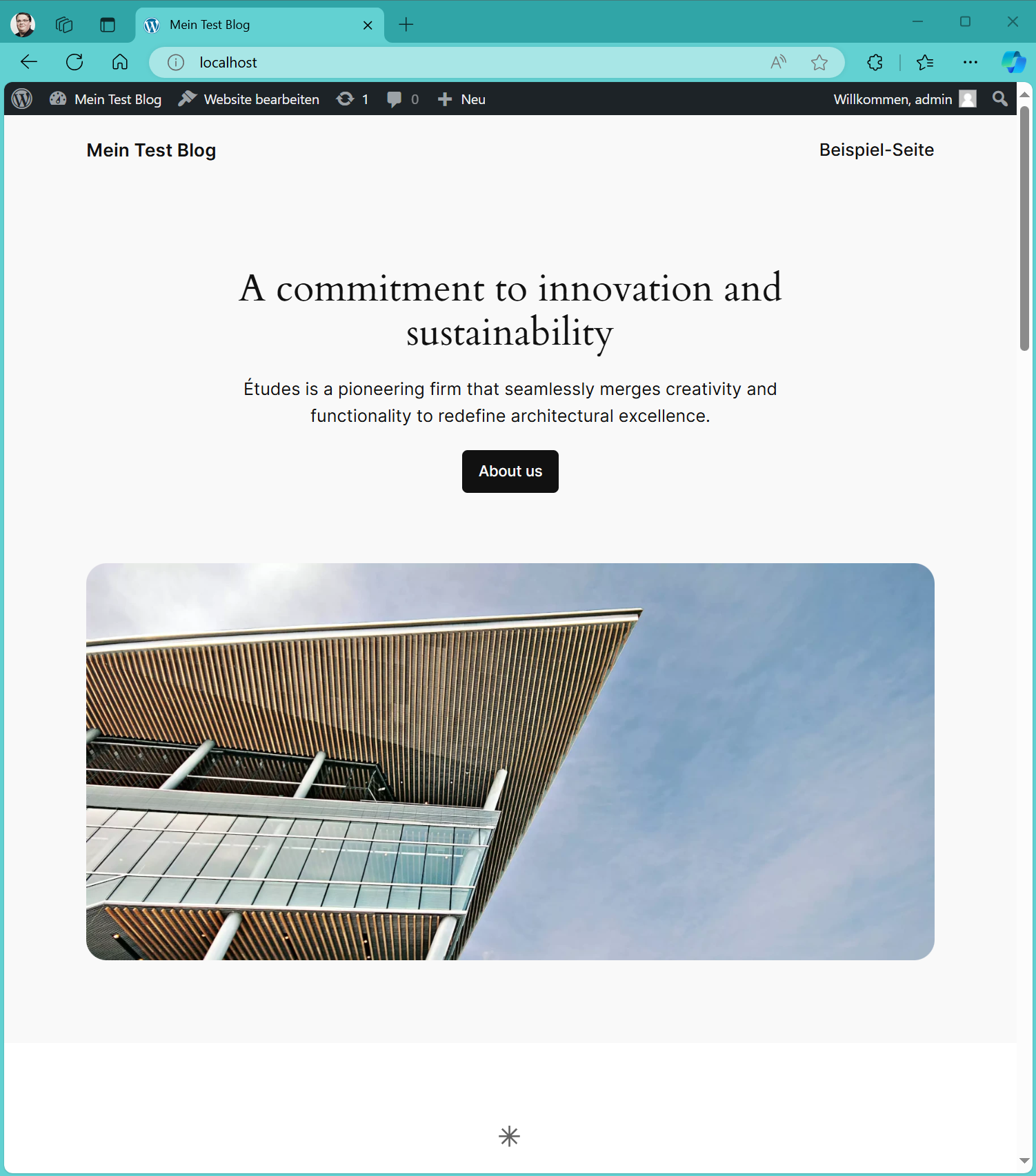 Wenn wir nun nur auf http://localhost navigieren, sehen wir unsere eigene WordPress-Seite.