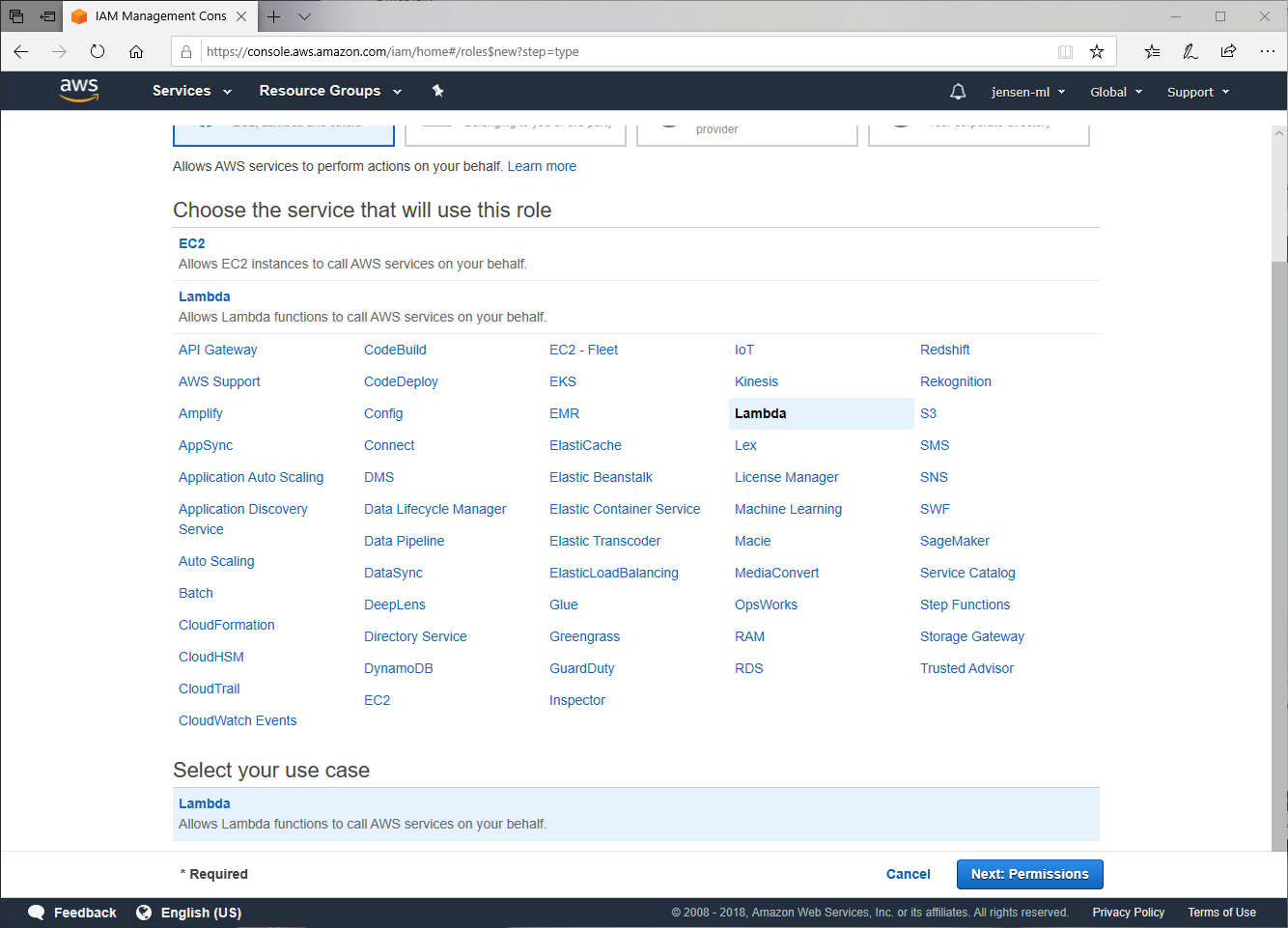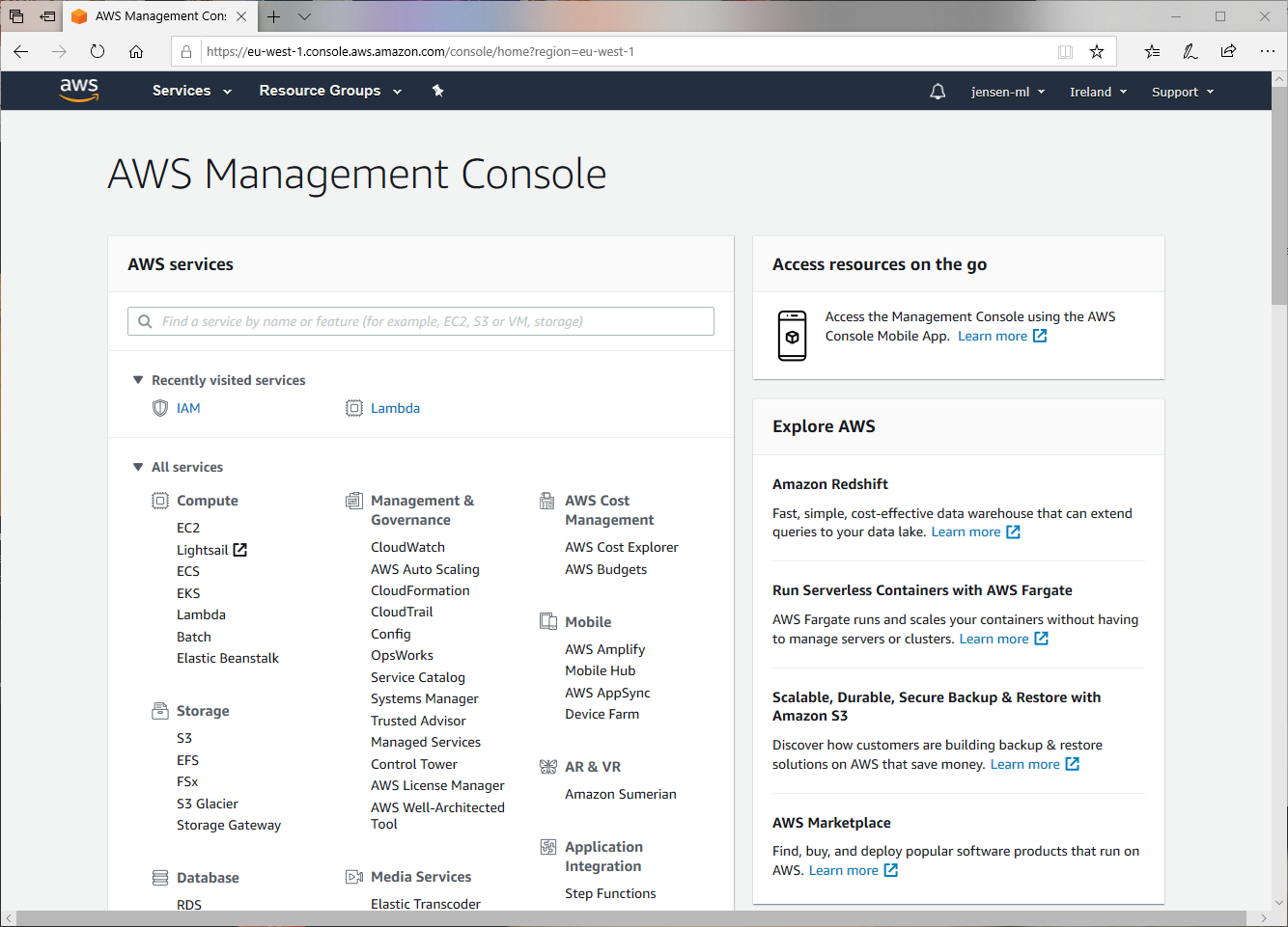 Bevor wir jetzt die Funktion zu AWS hochladen können, müssen wir noch eine passende Rolle in AWS definieren, damit wir die entsprechenden Berechtigungen haben, um eine Email-Nachricht zu senden. Dazu öffnen wir einen Browser, navigieren auf https://aws.amazon.com und loggen und mit unseren Credentials ein.