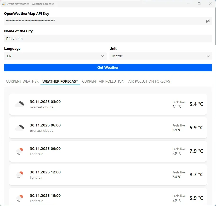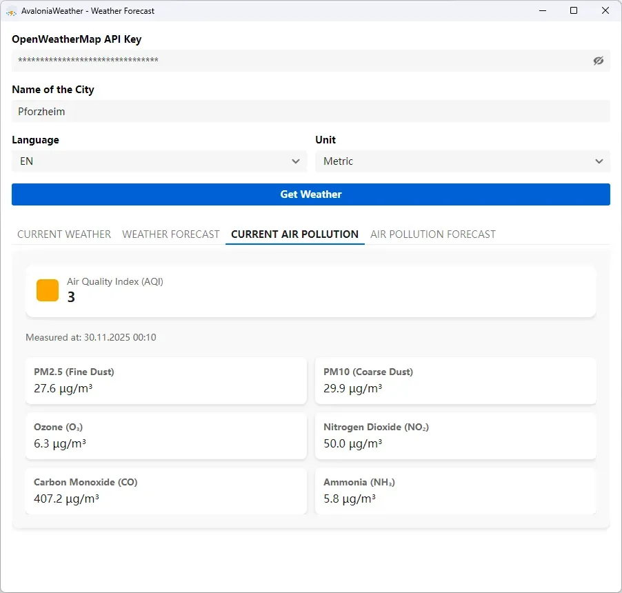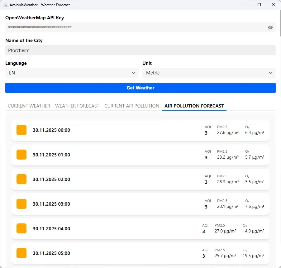 Das Entwickeln schöner, reaktionsschneller und plattformübergreifender Desktop-Apps war noch nie einfacher – dank UI-Frameworks wie Avalonia UI . In diesem Beitrag stelle ich mein neuestes Projekt AvaloniaWeather vor: eine moderne Wetter- und Luftqualitäts-Desktop-App, aufgebaut mit .NET 10, dem MVVM-Pattern, Dependency Injection, Lokalisierung und meinem eigenen NuGet-Paket OpenWeatherMapSharp .