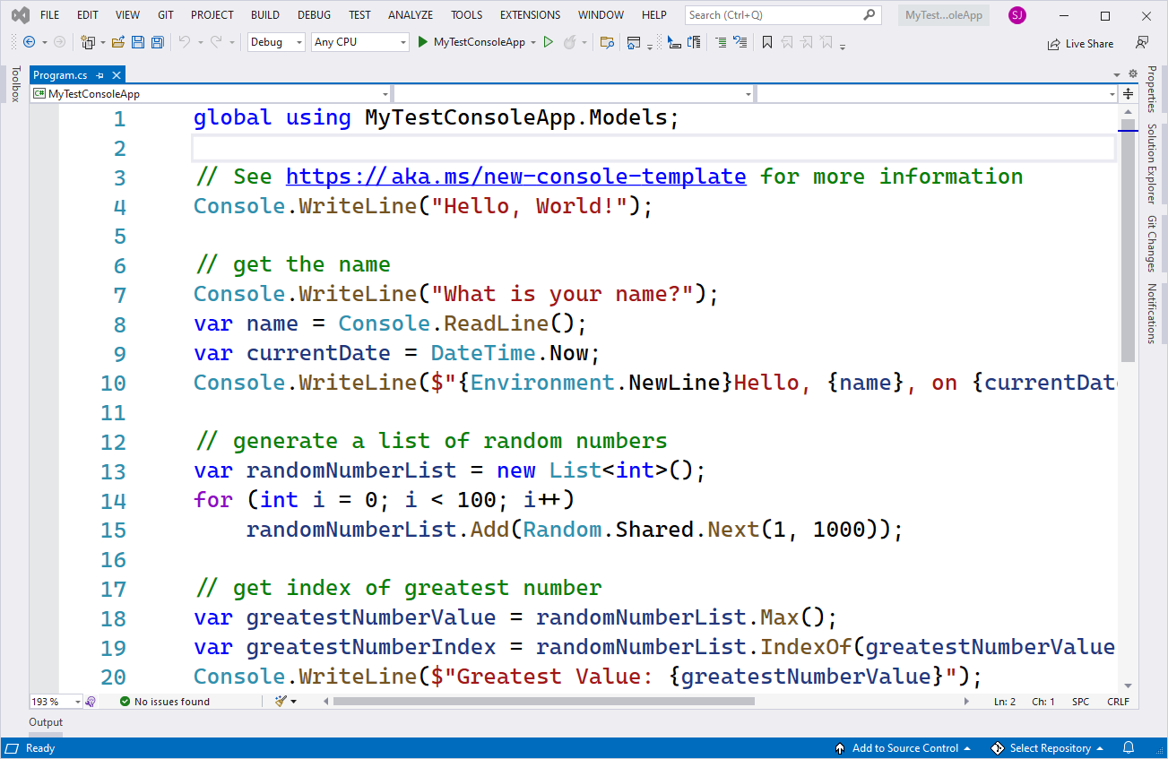 Ich habe bereits in einem Beitrag GitHub Copilot vorgestellt. Auch Visual Studio 2022 beinhaltet ein neues Features, nämlich AI IntelliCode. IntelliCodeist nicht neu, aber die Funktionalität wurde nun um eine künstliche Intelligenz erweitert. Sobald man eine Codezeile schreibt, versucht AI IntelliCode diese automatisch zu vervollständigen. Schauen wir uns das ganze doch mal an einem kleinen Beispiel an.