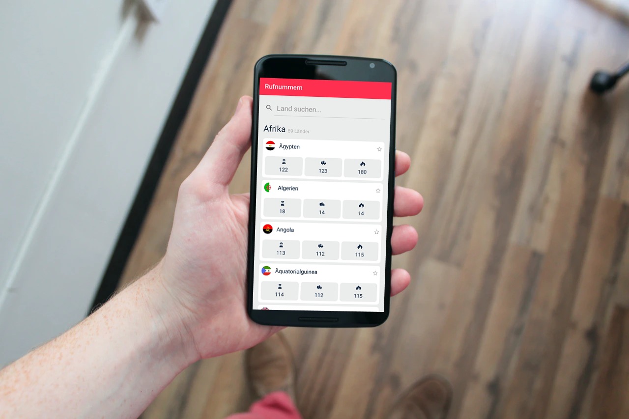 Es ist mal wieder so weit. Nachdem ich im letzten Jahr mit Deutschlands Kennzeichen meine erste App für Android und iOS veröffentlicht haben, folgt in diesem Jahr die App Notfall-Rufnummern. Wie der Name bereits vermuten lässt, hat man mit dieser App die Rufnummern für einen Notfall (Polizei, Feuerwehr & Arzt) für (fast) alle Länder auf der Welt übersichtlich in einer App zur Verfügung. In einer Notsituation kann man direkt einen Notruf absetzen und natürlich auch die Reise-Länder übersichtlich als Favoriten speichern, so dass der Zugriff noch schneller erfolgen kann.