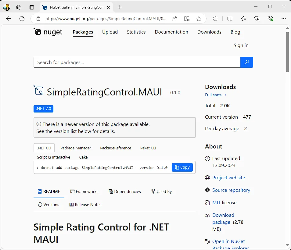 Wie ihr dem Screenshot entnehmen könnt, verfügt das NuGet-Paket über kein eigenes Icon, sondern nutzt das Standard-Icon. Nach dem Update von meinem NuGet-Paket gibt es nun ein entsprechendes Icon auf der NuGet-Seite.