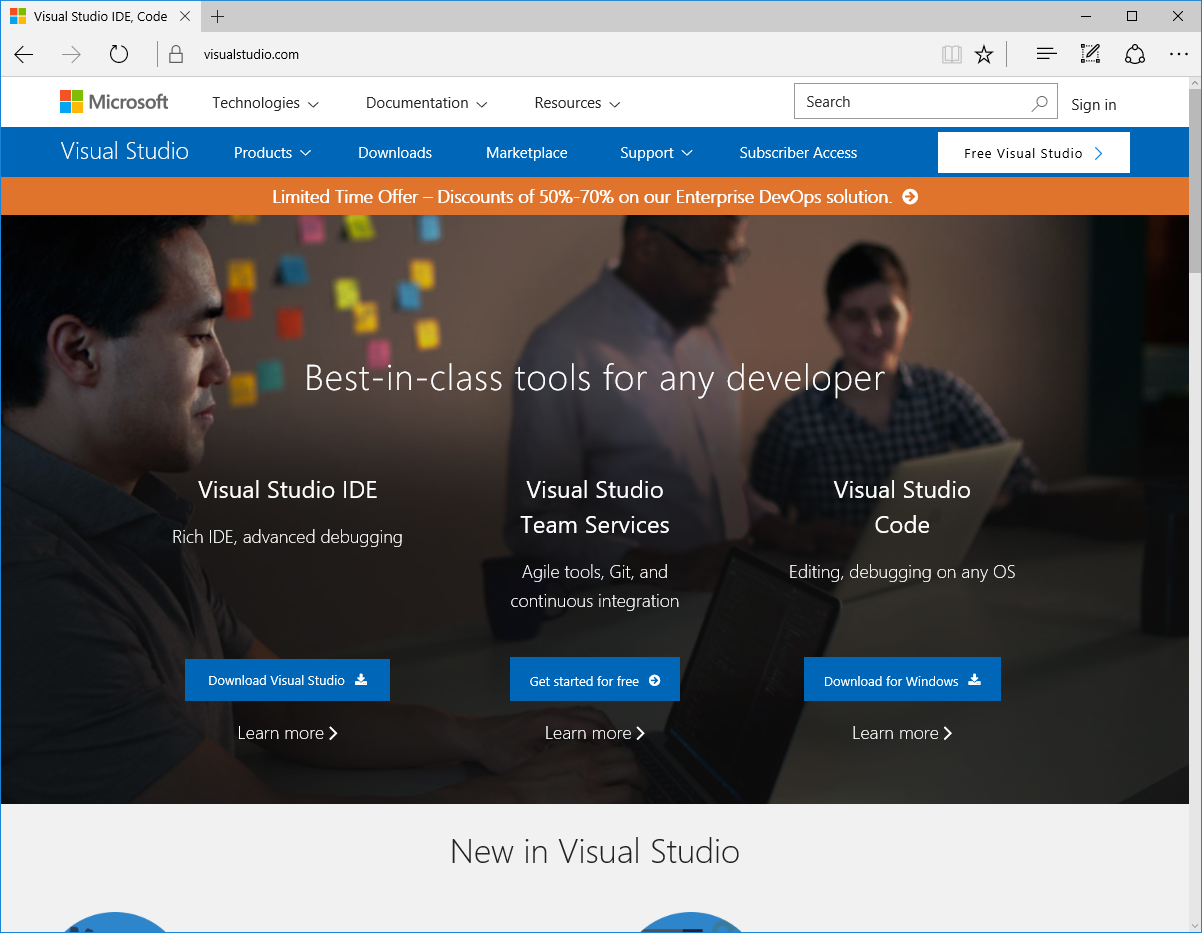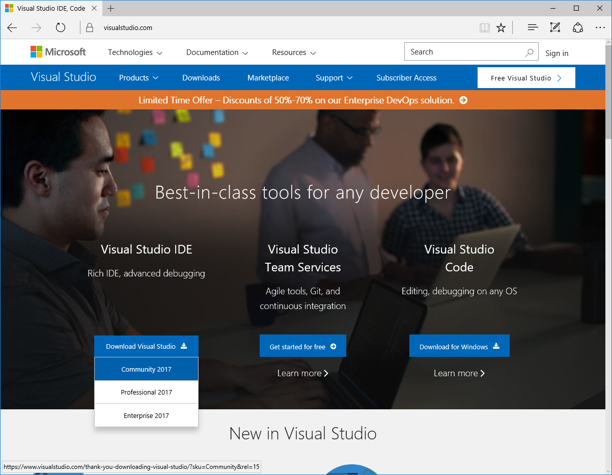 Hier kann man auf den Button Dowload Visual Studio klicken und sich seine passende Version auswählen. Ich wähle hier die Community Edition.
