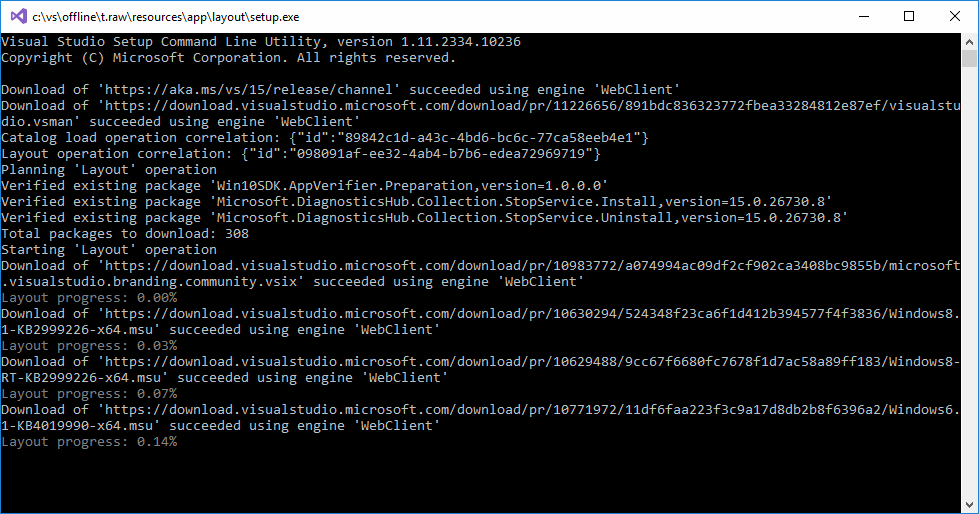 Es kommt immer mal wieder vor, dass man seinen Rechner neu installieren muss und dann darf natürlich die Installation von Visual Studio nicht fehlen. Konnte man früher bei älteren Versionen z.B. ISO-Dateien herunterladen, welche (fast) alle notwendigen Dateien beinhalteten, gibt es mit Visual Studio 2017 nur noch den Web-Installer. Sollte man jetzt auf mehreren Rechner Visual Studio installieren wollen, so kann das ganz schön auf die Bandbreite des Internetanschlusses gehen. In diesem Beitrag möchte ich nun zeigen, wie man sich ganz einfach einen Offline-Installer für Visual Studio 2017 erzeugen kann.