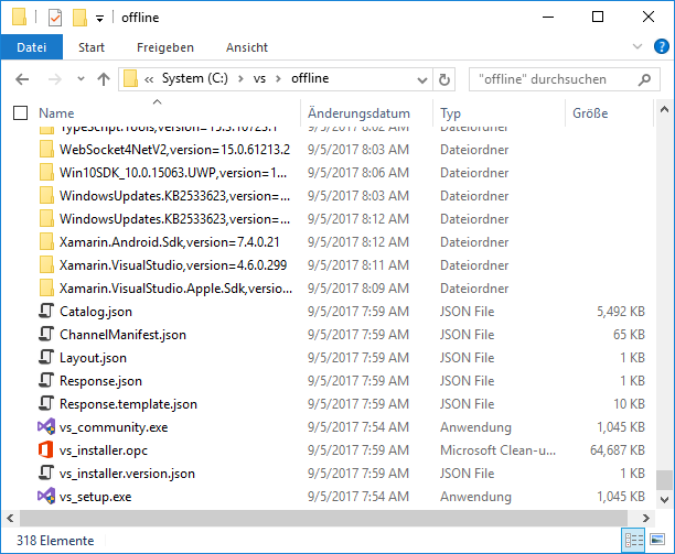 Anschließend kann man die vs_setup.exe starten und eine Offline-Installation durchführen.