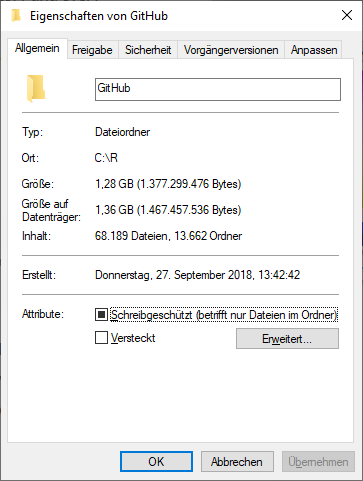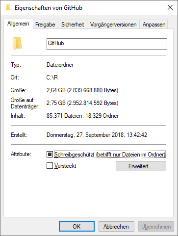 Wie man sehen kann, liegen hier aktuell gute 85.000 Dateien mit einem Speicherverbrauch von 2,75GB. Wir öffnen nun eine PowerShell-Konsole und navigieren zum GitHub-Ordner. Anschließend rufen wir den folgenden Befehl auf: