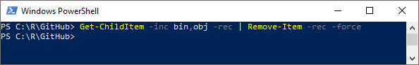 gci -inc bin,obj -rec | rm -rec -force