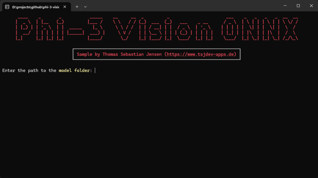 Zuerst zeigen wir unseren Header an und bitten dich dann, den Pfad zum ONNX-Modellordner anzugeben.