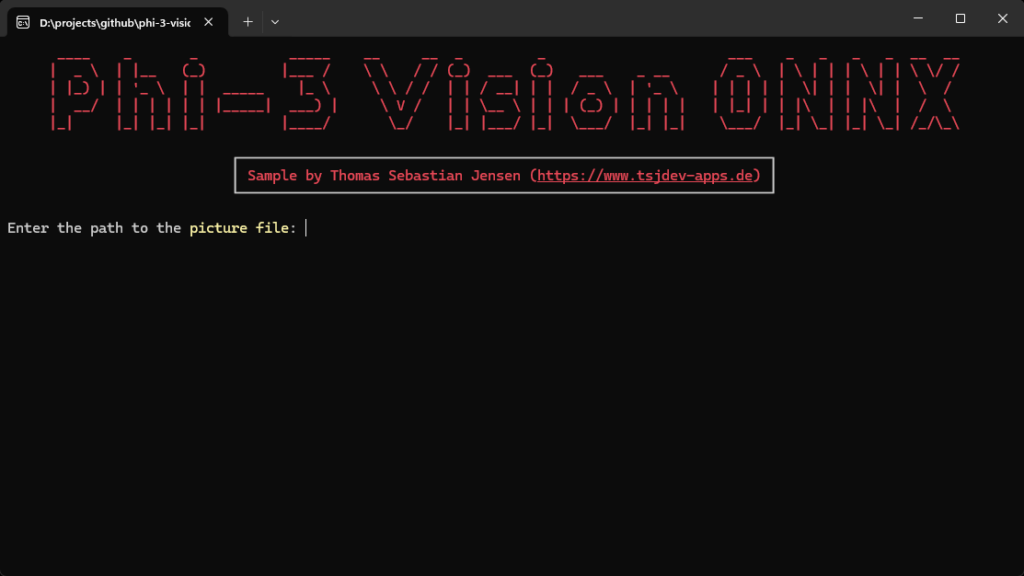 grid.AddRow(new FigletText("Phi-3 Vision ONNX").Centered().Color(Color.Red));