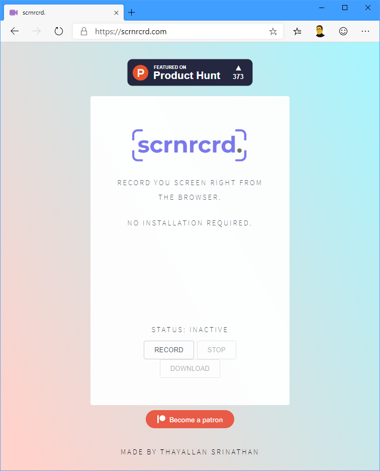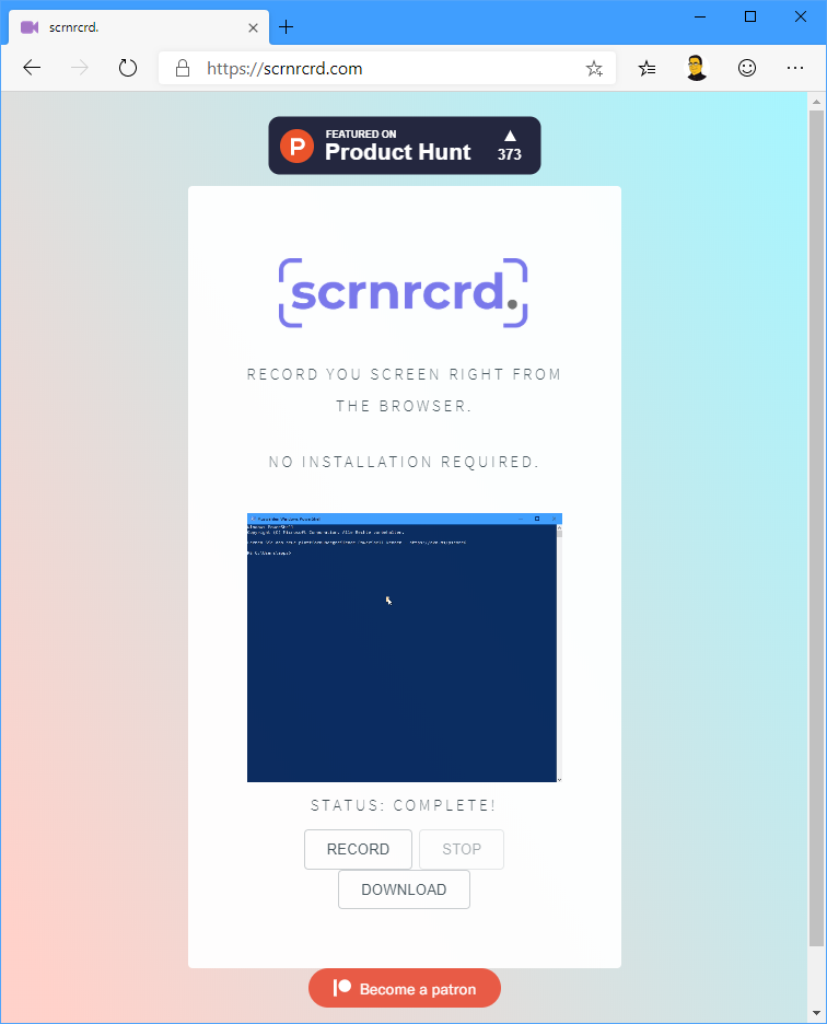 Manchmal möchte man ein kurzes Video von einem Programm auf dem Bildschirm machen, welches man dann mit Freunden oder Kollegen teilen möchte. Dies ist auch für Entwickler interessant, wenn sie ein neues Feature präsentieren wollen ohne den Code bereits mergen zu müssen. Für dieses Szenario gibt es zahlreiche Tools, welche man sich auf seinem Rechner installieren kann, aber mit scrnrcrd.com möchte ich heute eine Alternative vorstellen, welche direkt aus dem Browser heraus ein Video erstellen kann, welches sich dann bequem herunterladen und weiterbearbeiten lässt.