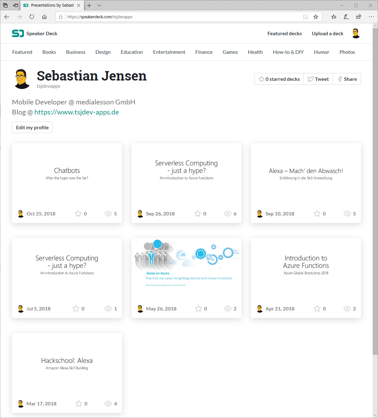 In diesem Jahr habe ich das eine oder andere Meetup als Speaker organisiert oder war auf verschiedenen Veranstaltungen/Konferenzen als Speaker mit dabei. Dabei entstanden natürlich auch ein paar Präsentation, welche ich nun auch auf Speaker Deck zur Verfügung stelle. Die meisten Präsentation werde ich im Anschluss an das Event entsprechend hochladen, so dass alle Slides an einem zentralen Ort zur Verfügung stehen.