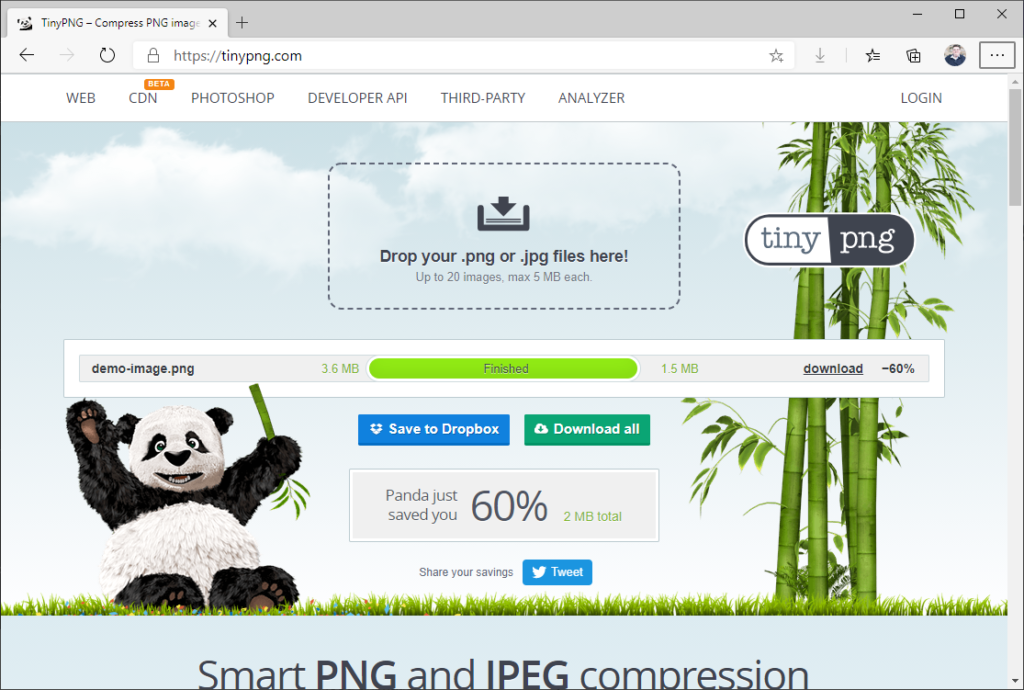 Ich kann den Dienst nur empfehlen und verkleinere gerne meine Bilder mit TinyPNG und spare somit eure Bandbreite und meine Festplatte.