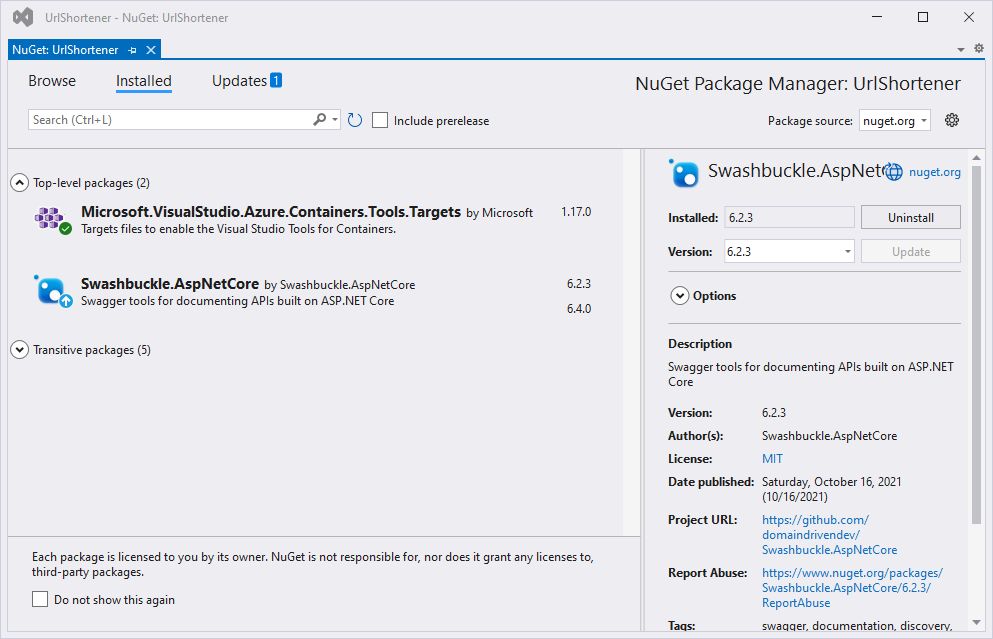 Den Vorgang wiederholen wir noch für das Package Hashids.net .