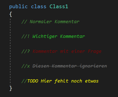 Das wichtigste Werkzeug für Entwickler im .NET Bereich ist sicherlich Visual Studio. Daher möchte ich immer mal wieder Tipps und Tricks verraten, wie man noch besser mit VS arbeiten kann. Dazu gehören auch Extensions, welche den bestehenden Funktionsumfang erweitern und einen so noch produktiver werden lassen. Heute geht es um eine Erweiterung, welche das Arbeiten mit Kommentaren vereinfachen sollen, nämlich Better Comments . So kann man Kommentare zur „Kommunikation“ zwischen Entwicklern verwenden und diese je nach Typ anders dargestellt anzeigen lassen. So werden z.B. standardmäßig Todo-Kommentare in einem hellen Gelb dargestellt, so dass diese beim Scrollen durch den Code direkt ins Auge fallen.