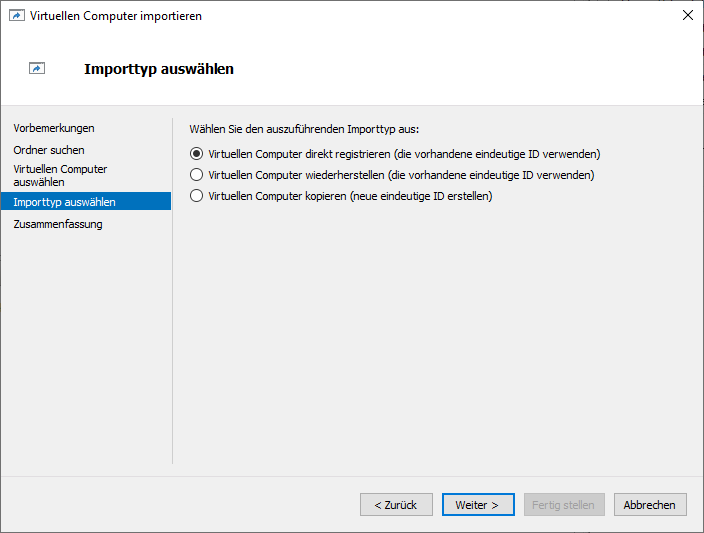 Im vorletzten Schritt sollen wir den Importtyp auswählen. Ich lasse hier einfach die Standardeinstellung und klicke dann wieder auf Weiter.