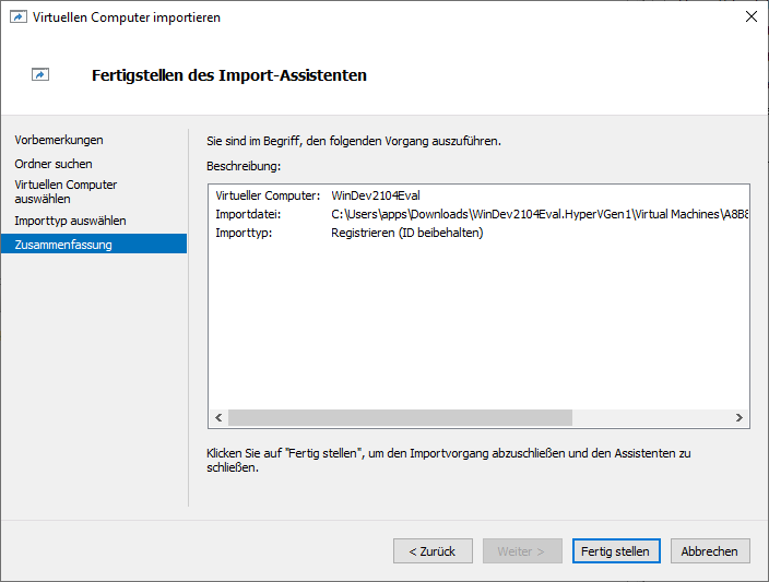 Abschließend erhalten wir noch einmal eine Zusammenfassung und können den Assistenten über den Button Fertig stellen beenden.
