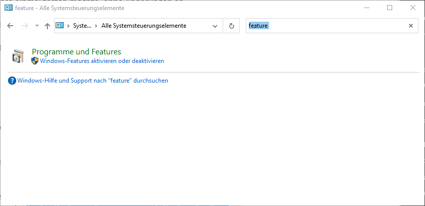 Zunächst müssen wir überprüfen, ob Windows Sandbox auf eurem Rechner bereits vorhanden ist. Dazu öffnen wir die klassische Systemsteuerung und suchen nach Feature. Wir finden hier die Option Windows-Feature aktivieren oder deaktivieren, welche wir anklicken.