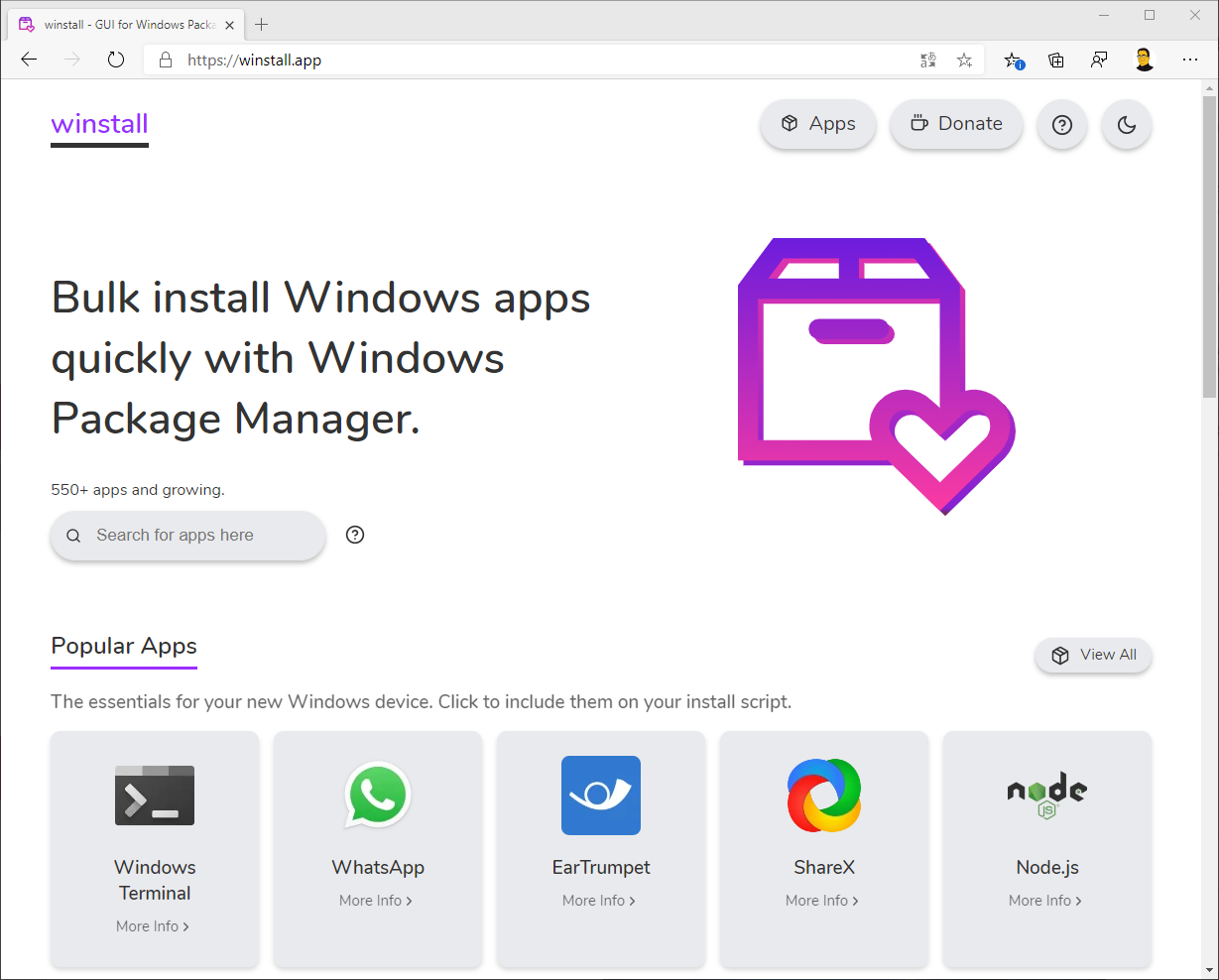 Im Rahmen der Build-Konferenz 2020 hat Microsoft seinen eigenen Package Manager in einer Preview-Version vorgestellt. Keine 48 Stunden hat Mehedia Hassan eine Webseite erstellt, welche übersichtlich alle zur Verfügung stehenden Packages auflistet und man sich durch einfache Klicks ein Installations-Skript bauen kann. Dieses braucht man nur auf einem neuen Rechner auszuführen und die wichtigsten Tools sind dann bereits nach kurzer Zeit installiert. Werfen wir doch einmal gemeinsam einen Blick auf die Webseite.