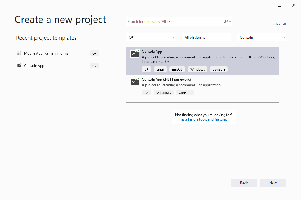 Als Ausgangslage öffnen wir Visual Studio 2022 und erstellen ein neues Projekt. Dabei wählen wir Console App als Template aus.
