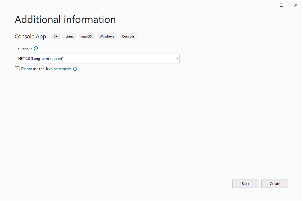 Wie bereits angekündigt, wollen wir .NET6 als Framework verwenden und daher stellen wir sicher, dass dieses im nächsten Schritt auch ausgewählt ist.