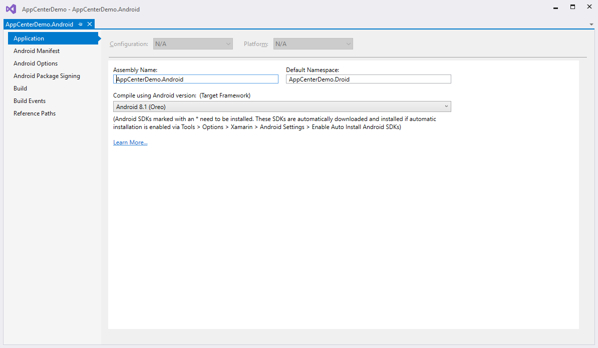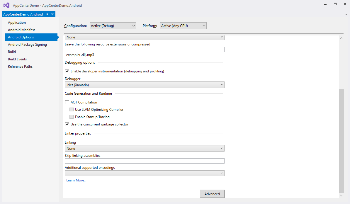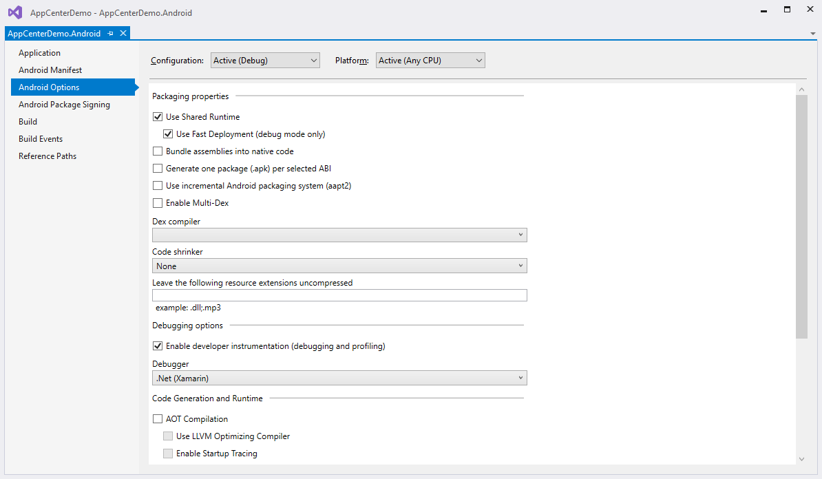 Öffnet zunächst ganz normal eure Solution in Visual Studio. Anschließend öffnet ihr die Optionen von eurem Android-Projekt.